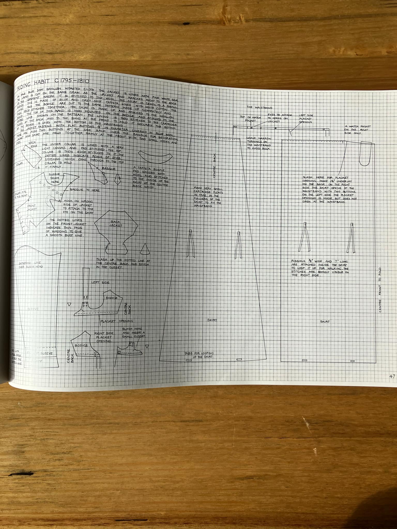 This unique book contains illustrations and patterns from original historical dresses from 1660 - 1860, a must have for any costume professional. Janet Arnold books are highly sought after and informative.